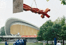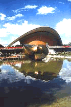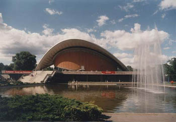 | Die Kongreßhalle wurde 1957 als Beitrag der Internationalen Bauausstellung von dem amerikanischen Architekt Hugh Stubbins entworfen. Sie galt als Symbol der deutsch-amerikanischen Freundschaft und sollte "Forum des freien Gedankenaustausches zwischen Menschen aller Nationen werden", so der damalige Bundespräsident Theodor Heuss bei der Einweihung. Aufgrund von Bauschäden stürzte 1980 ein Teil des Daches ein; das Gebäude wurde anschließend getreu dem Entwurf von Hugh Stubbins zur 750-Jahr-Feier Berlins 1987 wieder aufgebaut. | Seit 1989 ist die Kongreßhalle "Haus der Kulturen der Welt" und führt damit ihre ursprüngliche Bestimmung als Ort der internationalen Verständigung wieder fort. Das Haus der Kulturen der Welt in Berlin ist ein Forum für den Dialog vor allem mit den Kulturen Afrikas, Asiens und Lateinamerikas. Konzentriert auf die Gegenwartskulturen ist es ein Podium aller Künste: Musik, Tanz, Theater, Bildende Kunst, Film und Literatur finden unter dem Dach der ehemaligen Kongreßhalle ideale Aufführungsbedingungen für ein interdisziplinäres Zusammenwirken. |