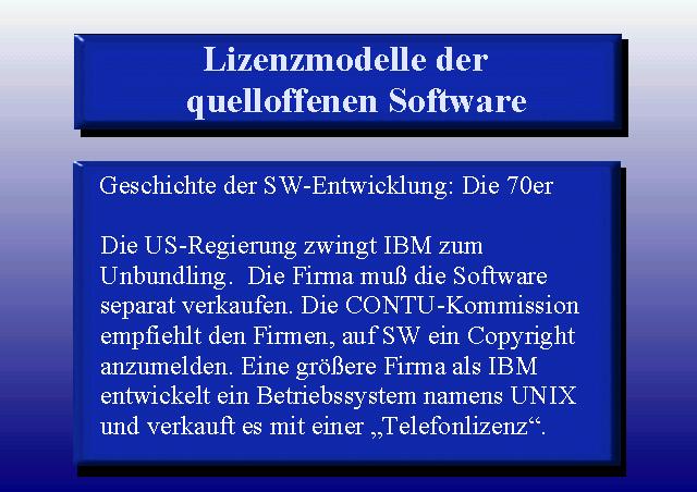 Das von den Bell Labs entwickelte UNIX wurde zunächst frei von jeden Beschränkungen im Source Code an den Universitäten verteilt. Mit der Zerschlagung von AT&T im Jahre 1979 musste der Source Code bezahlt werden, das machten Firmen wie DEC, IBM oder HP, die ihr Unix an die eigene Hardware anpassten. Die Vorlage zur Unix-Lizenz war die Lizenz, mit der die Baby Bells das Know-How von AT&T abkauften.