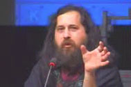 Stallman: I don't want to answer that question because it uses the term 'intellectual property' which is a bad term to use. Let me explain why. It is an attempt to make a generalization where you can't generalize correctly. To try to generalize about systems of law such as copyright, patents, trade secrets, trademarks, and other minor things that are vaguely similar is wrong because they are too different. If you pick one term to apply to all of them, that will lead you to treat them as if they were similar, to assume that they are similar. They are not similar, they are more different than they are similar. It leads to intellectual error to use any term to generalize about them all. You should not talk about them all, you should discuss them individually. Talk about copyrights, talk about patents, talk about patents in a specific field, because they have different effects in different fields. Because of that it's a pitfall for error. There's another problem with it. It presupposes an answer to the most important question about the political issue which is: should somebody be able to own a monopoly of controlling other peoples' use of some kind of conceptual abstraction. By calling these things property you're assuming that they are somebody's property. You are tossing out the other alternative that maybe they should not be somebody's property, maybe that form of power should not exist in society. Because of that I won't talk about intellectual property. The other things is, I don't think the identity of the owner matters at all. What matters is whether you are free or a slave -- it doesn't matter who the master is. Who it is that holds the other end of the chain is secondary. The important thing is if there is a chain on you. So forget the identity of the master. [applause]